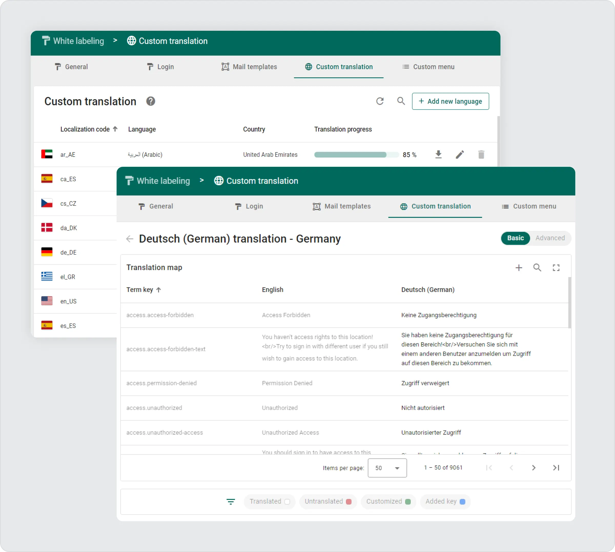 With the new update, adding localization is now easier through the Web UI instead of using plain JSON. The improved localization support feature enables you to search by languages and term keys, filter by unfilled, modified, or new keys, and track translation progress more effectively.