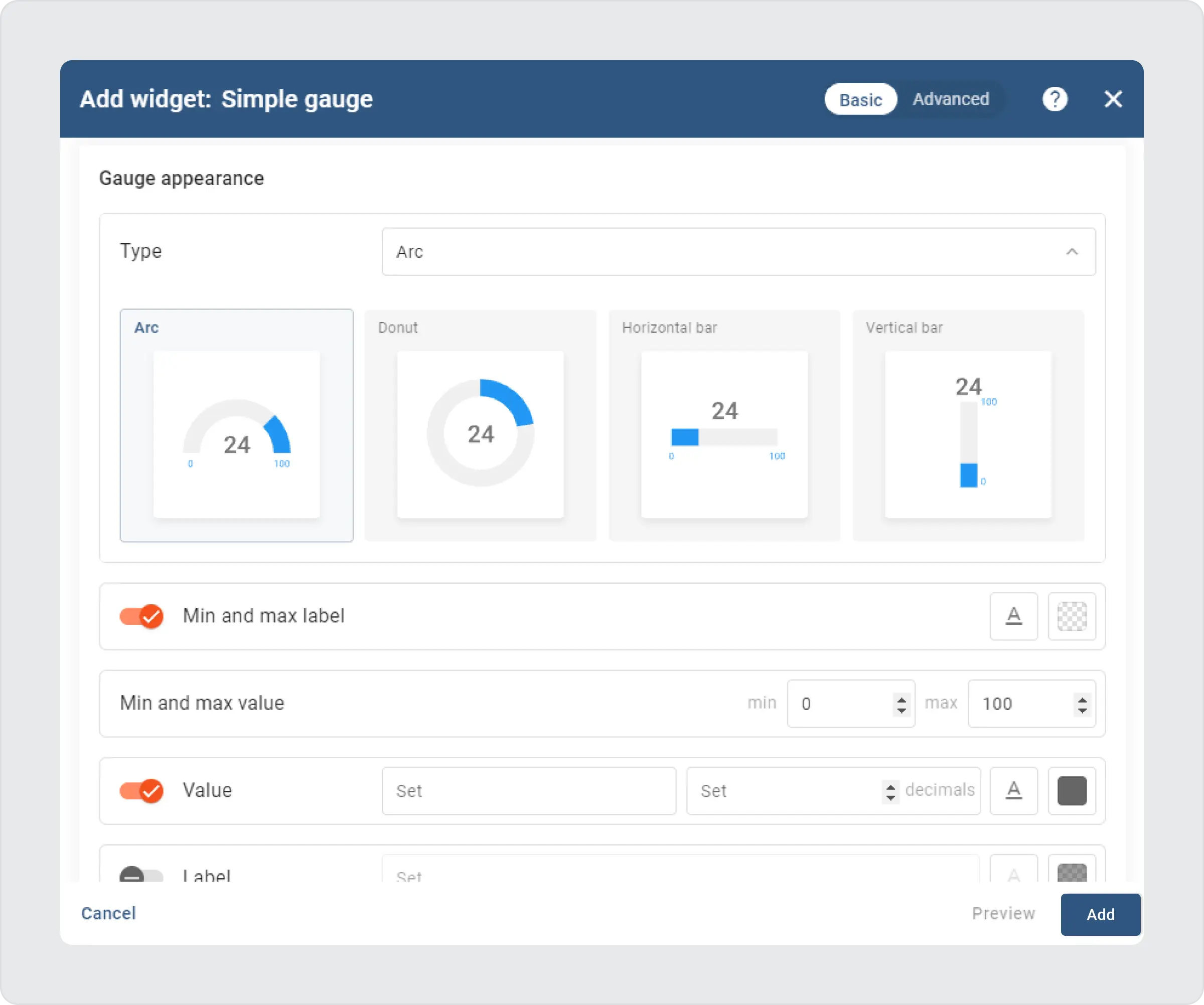 Our digital gauges have undergone significant improvements. We have streamlined the widget configuration, consolidating settings into a basic form and making the setup process more intuitive.
