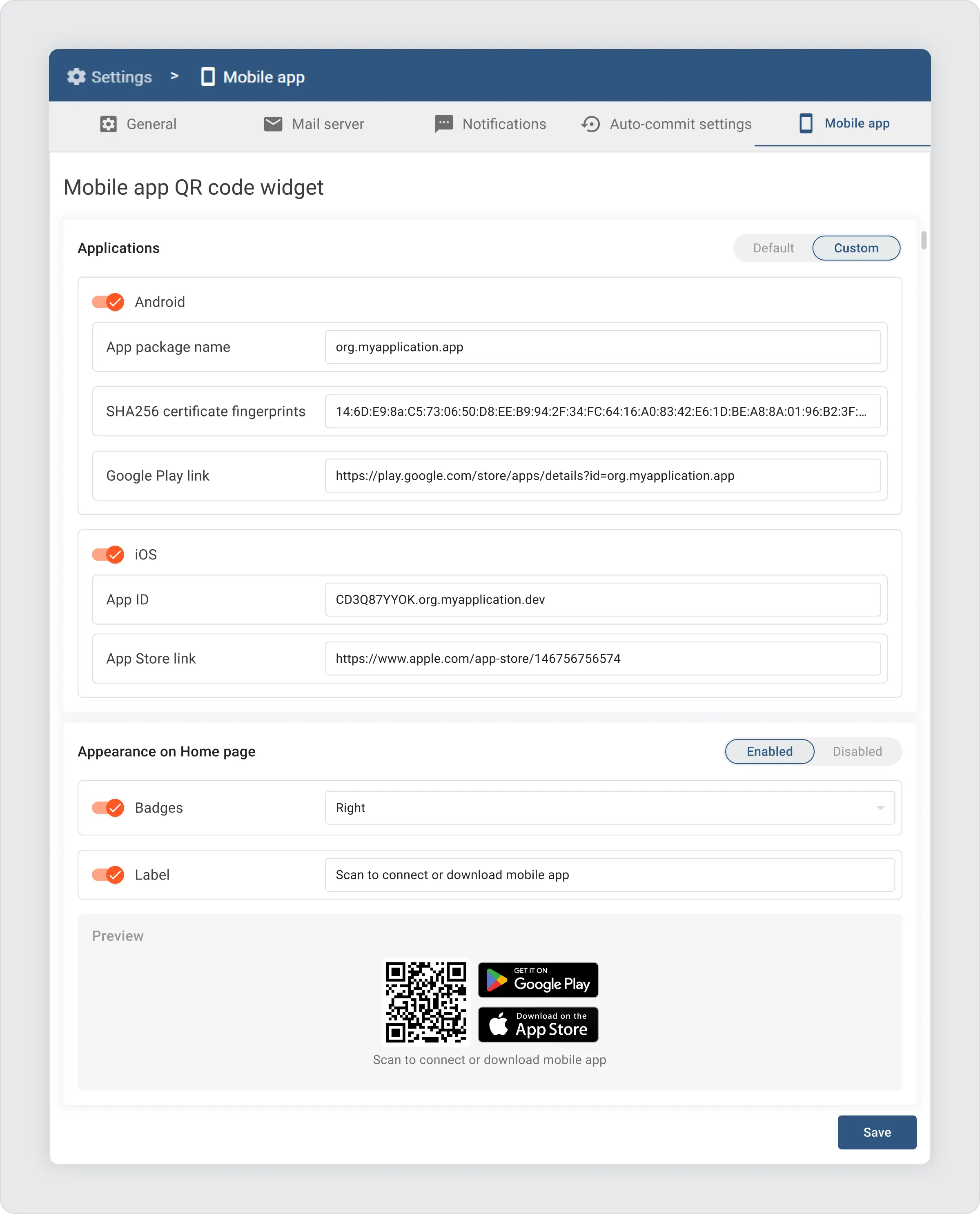 The QR code widget is highly configurable and can point to your custom application built on top of the ThingsBoard mobile app.