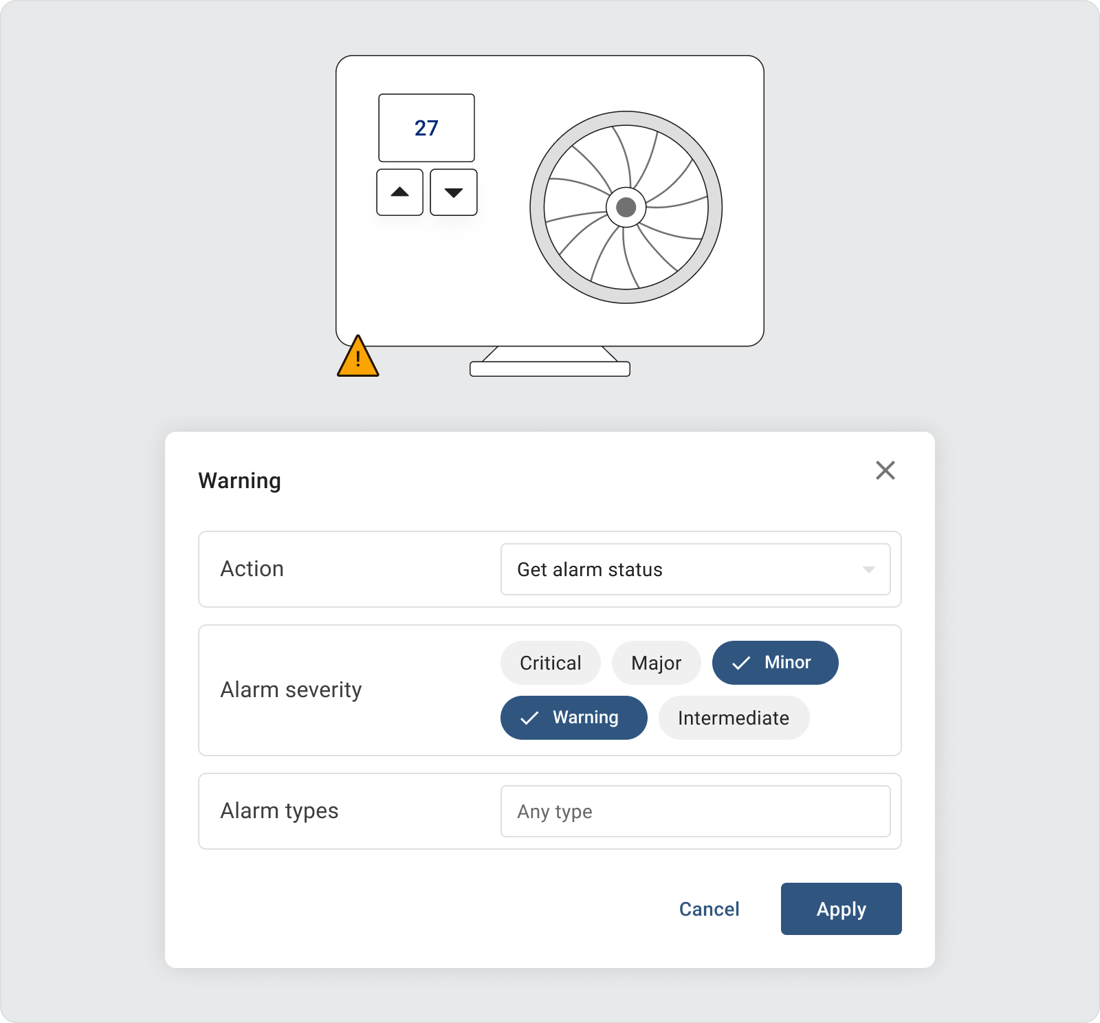We’re excited to introduce the “Get alarm status” action for configuring SCADA symbols. This feature enables real-time visualization of alarm statuses, filtered by type and severity. You can also use this functionality to set up behavior of other widgets like switches and buttons.