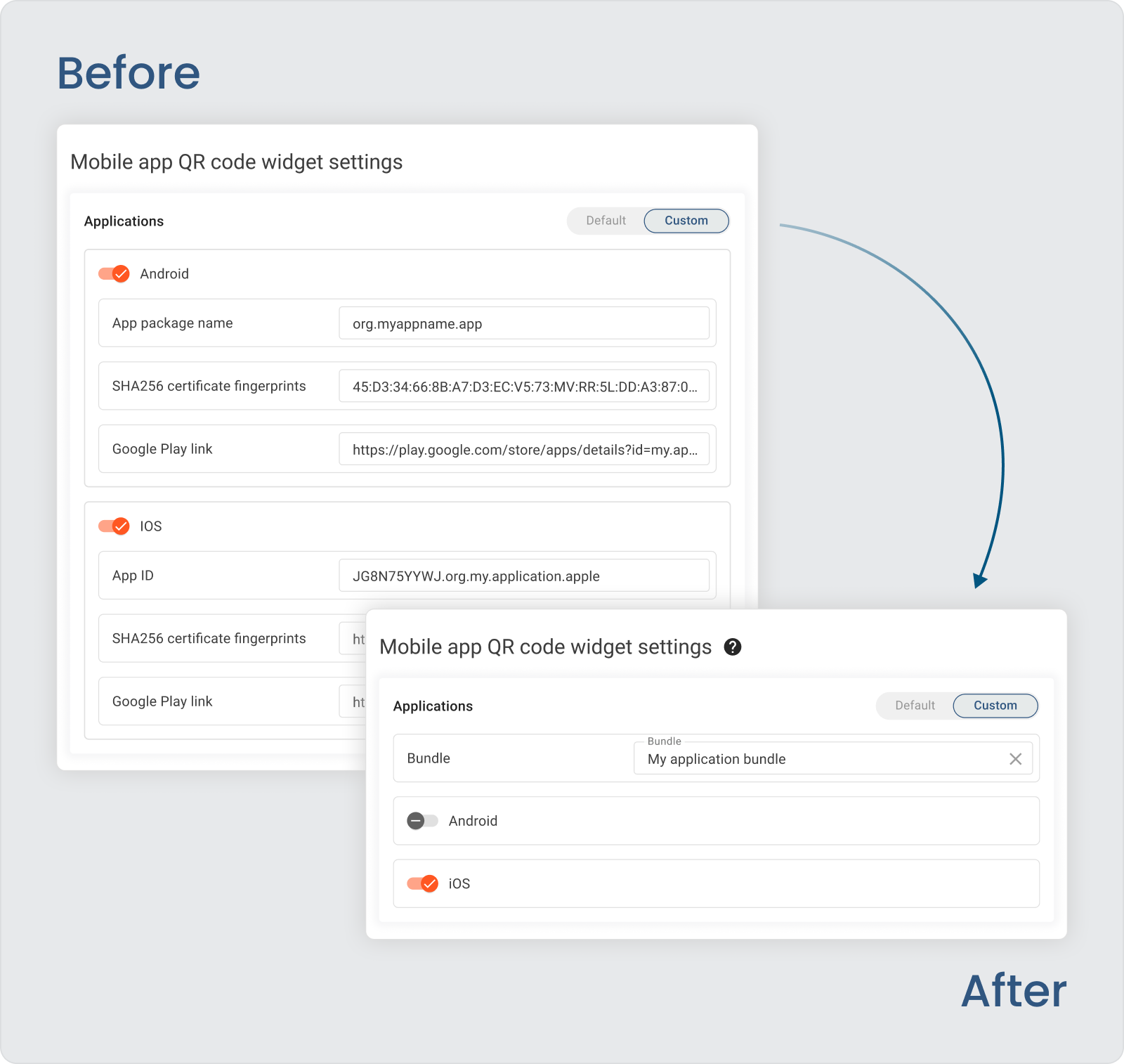 Integrating a custom QR code into your app has become more convenient. Now you just choose the bundle from the application center that you would like to use to get the QR code.