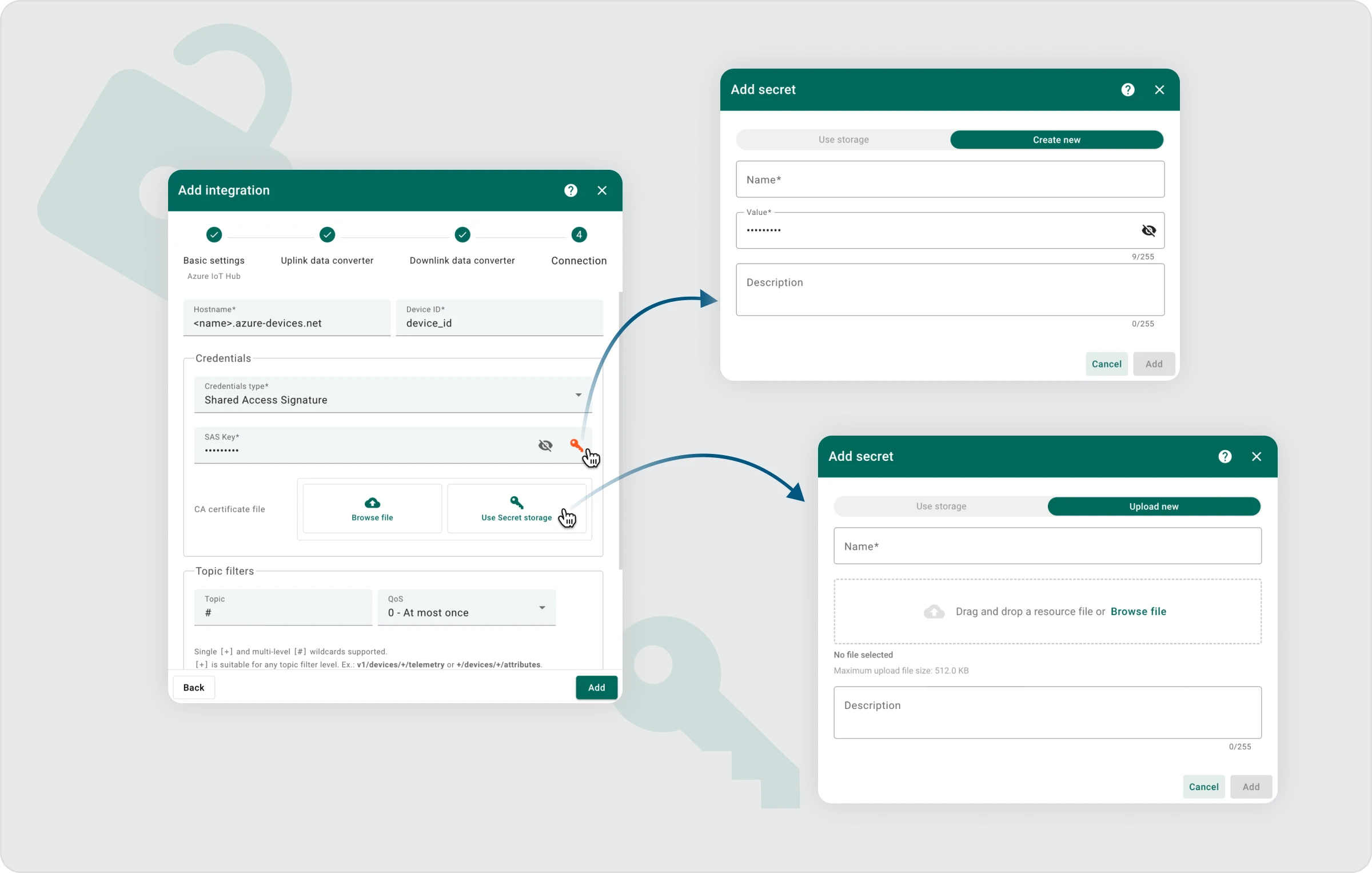 - Seamless integration: create secrets in advance for reuse, or generate them directly while setting up Rule Engine nodes or integrations.