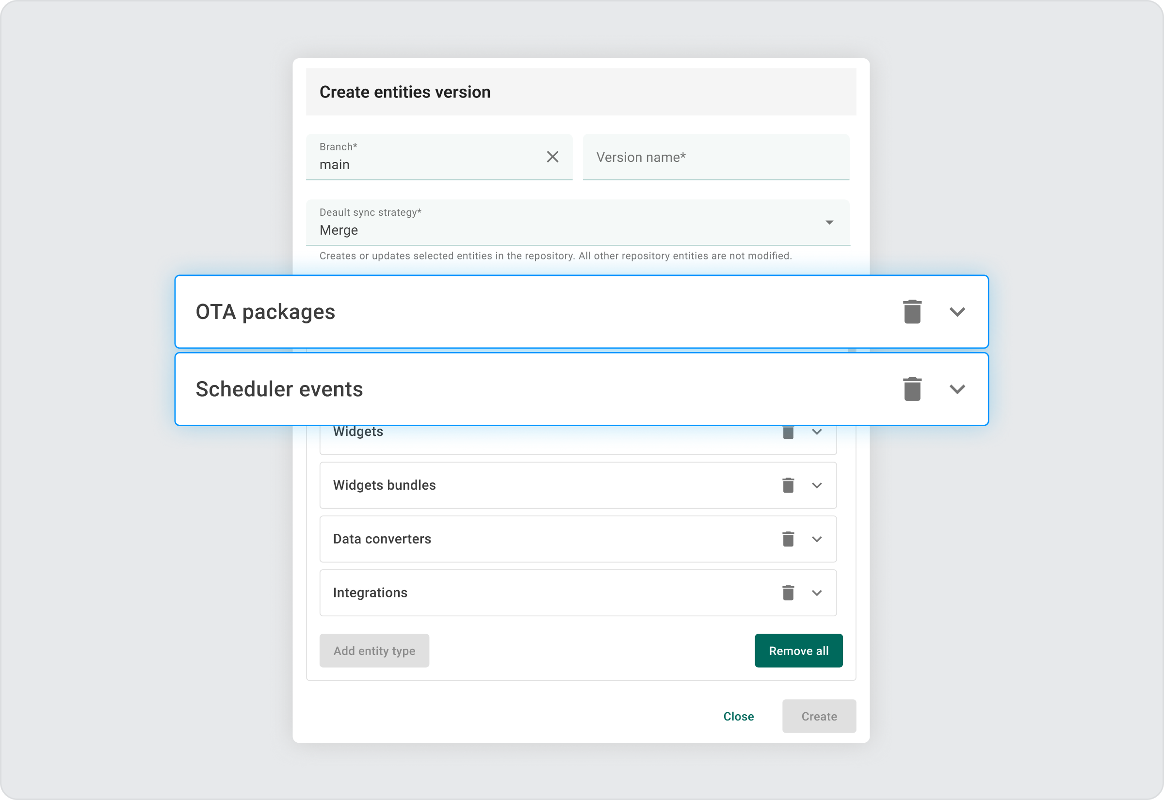 ThingsBoard 4.2 expands the power of Version Control by adding support for OTA packages and Scheduler events. Now you can include firmware update definitions and scheduled tasks in versioned snapshots — alongside dashboards, rule chains, report templates, and other entities.