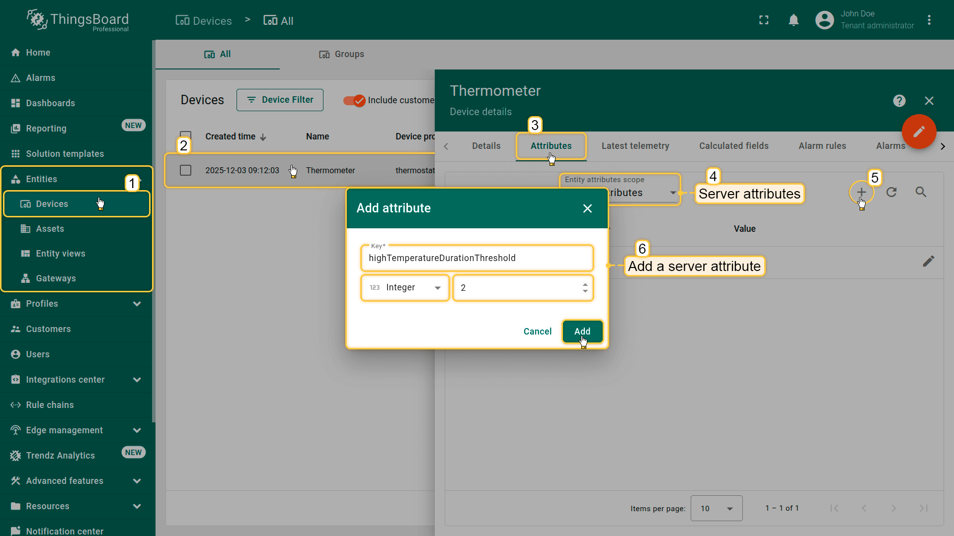 - Attribute scope: Server attributes