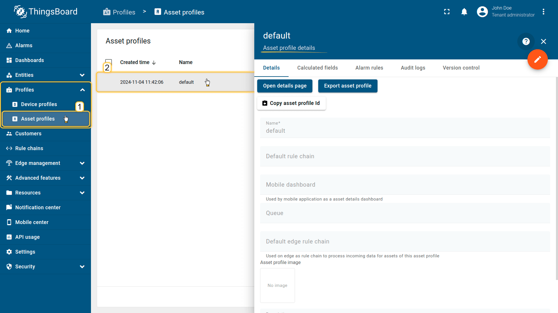 Since ThingsBoard 3.4.2, the Tenant administrator is able to configure common settings for multiple assets using Asset Profiles. Each Asset has one and only profile at a single point in time. Experienced ThingsBoard users can notice that the asset type has been deprecated in favor of the Asset Profile. The update script will automatically create Asset Profiles based on unique Asset Types and assign them to the appropriate assets.
